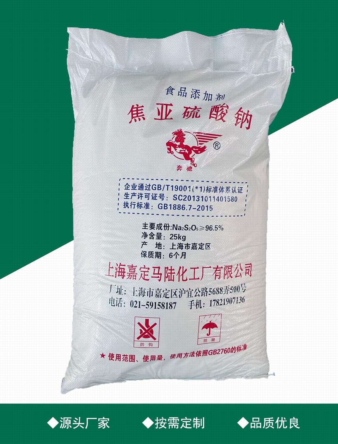 上海嘉定馬陸化工廠有限公司主營生產(chǎn),焦亞硫酸鈉、亞硫酸氫鈉等產(chǎn)品生產(chǎn),幾十年的專注焦亞硫酸鈉研發(fā)生產(chǎn),公司擁有完整、科學(xué)的質(zhì)量管理體系,為確保公司產(chǎn)品能夠長期立足于市場,增強(qiáng)客戶的粘性,可滿足客戶的非標(biāo)定制需求,可提供產(chǎn)品各個用途的解決方案,公司重信譽(yù)、守合同、保質(zhì)量、快速發(fā)貨以,我們擁有專業(yè)的售前售中、售后團(tuán)隊共同協(xié)作,確保用戶采購中的每個環(huán)節(jié)都能有滿意的體驗(yàn)度。